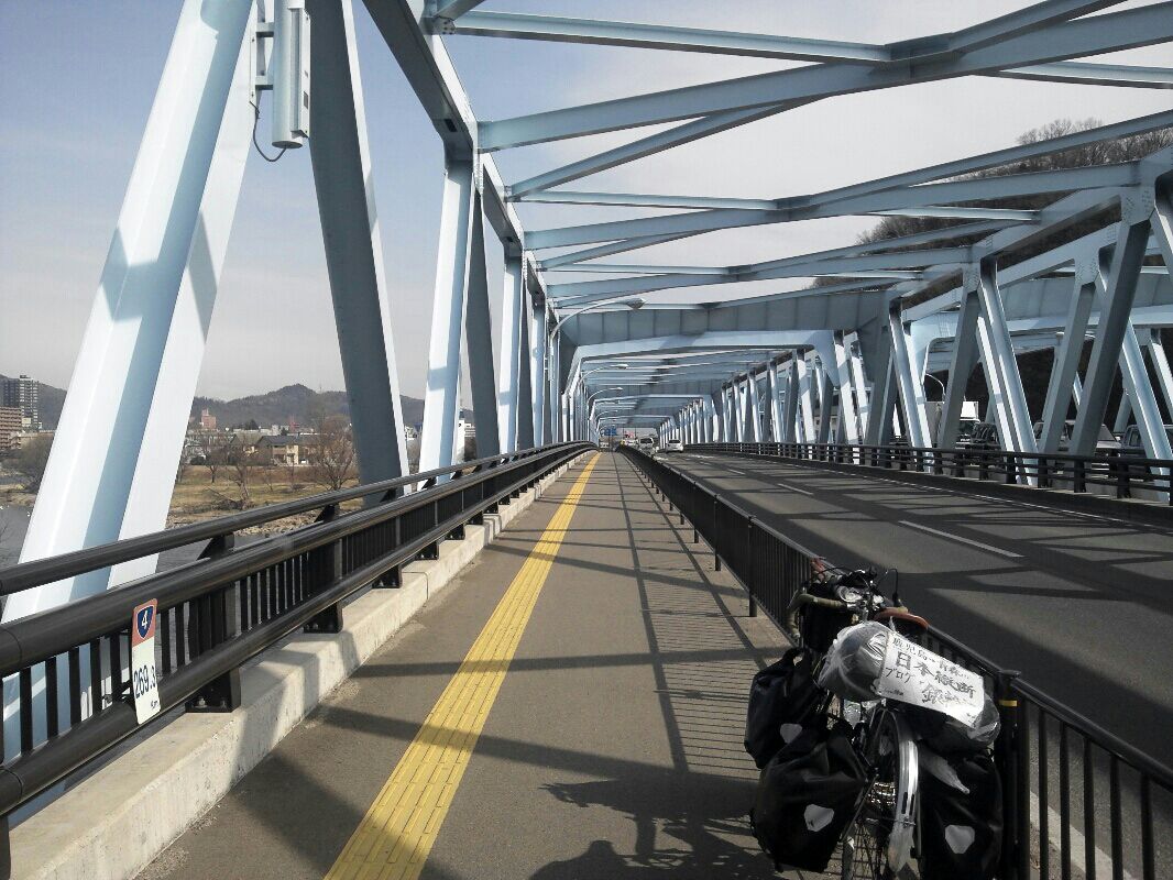橋を渡っているとき、福島県に入って初めて声をかけていただきました。福島市在住のおばちゃんでした。