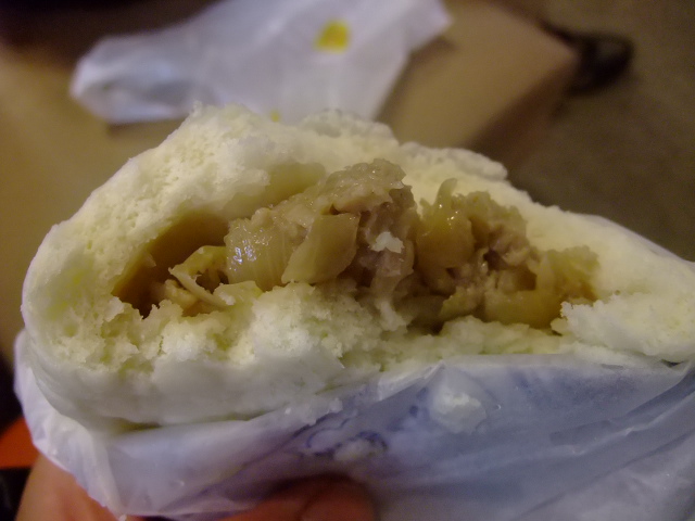 窪川ポークのミンチと、タケノコ、玉ねぎがたっぷり使ってあり、かなりジューシーな豚まんです。人気のわけが分かりますな!!