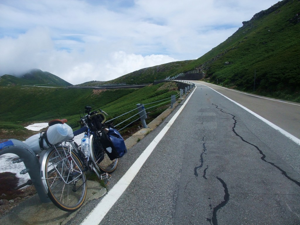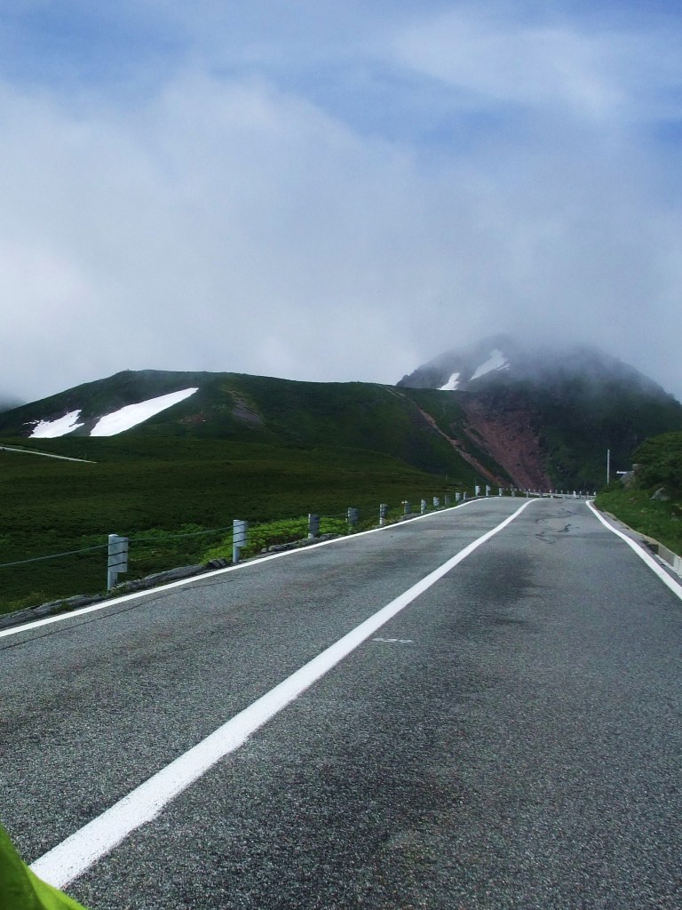 雲の上の高山地帯を一本の道が通っている光景は圧巻です。その中を今から自分たちが走るというから、興奮は最高潮です。霧もほとんど晴れました。