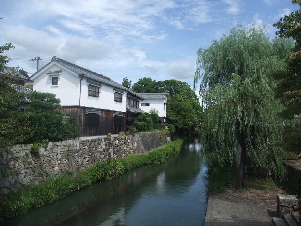 で、日牟禮八幡宮手前に流れる八幡掘。風情のある風景。