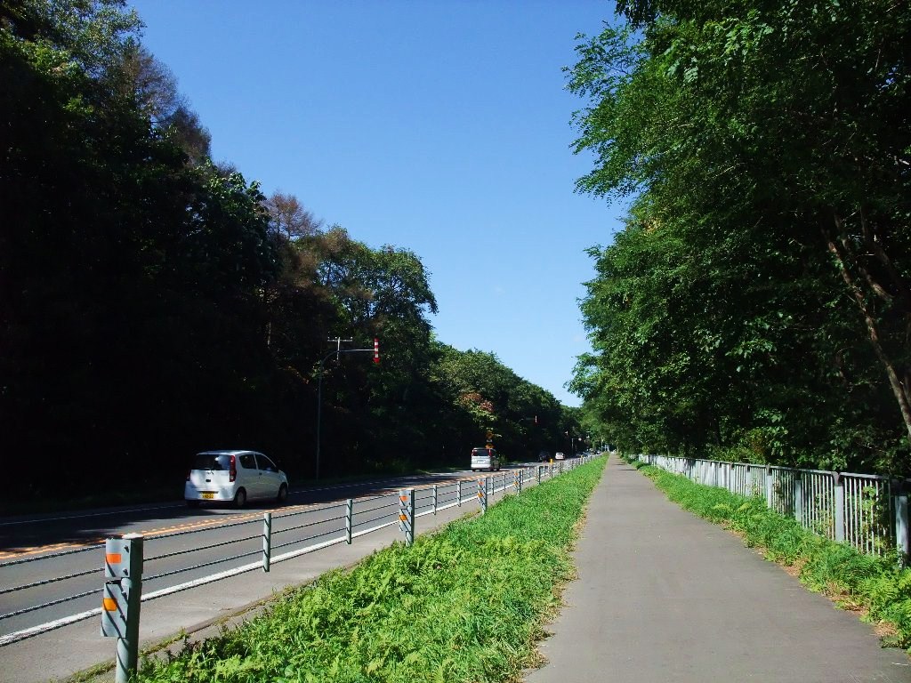 苫小牧から支笏湖へは、上り坂ですがサイクリングロードが整備されています。