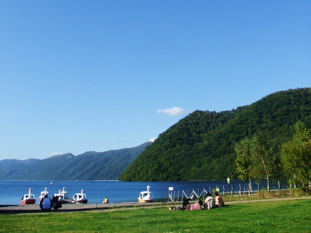 原っぱに寝転がり、本を読んだりして支笏湖の午後を過ごしました。