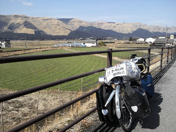 外輪山を望み、コスモスロードと呼ばれる田んぼ中の直線道を進みます!素晴らしい田園風景の中をぼーっとペダルを漕いでいきます。北海道のような爽快な道です!
