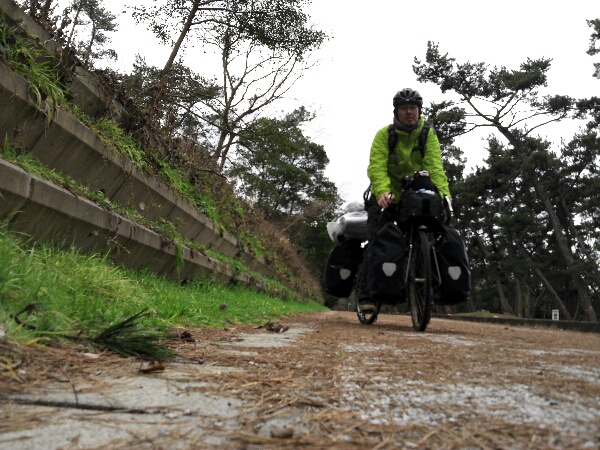 14:30 自分の走っている写真を撮ろうと、松原の道端でガサゴソやっていると、後ろから来たサイクリストに声をかけられます。