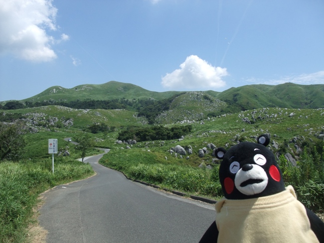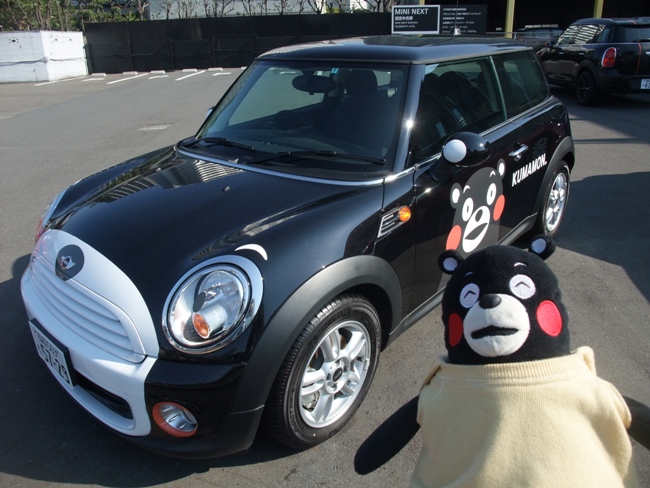 途中、偶然にも話題のくまモンミニを発見。