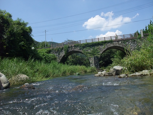 そして気づくと眼鏡橋へ!!(いつの間に長崎に…)GPSで確認したらちゃんと北九州に居ました。正確には春吉眼鏡橋というそうです。ニ連の石造りアーチ橋です。この辺では珍しい橋みたいです。