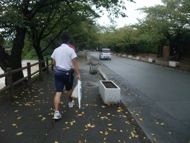 近くのコンビニでビニール傘を仕入れ、鞄一つで歩き旅です。目的地は……え~と、無し!自転車旅で鍛えた二人の勘を頼りに面白いものを探していこうっていう旅ですな。