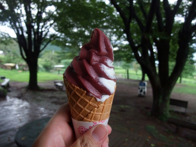 ブルーベリーのソフトを頂きました(´▽`)Berryの味がVery濃いです!ミルクの部分も濃厚でうんまい!阿蘇はソフトクリームのレベルが高いことでも有名ですからね。こんな美味いアイスで毎回補給できる熊本のサイクリストが羨ましいっす(笑)