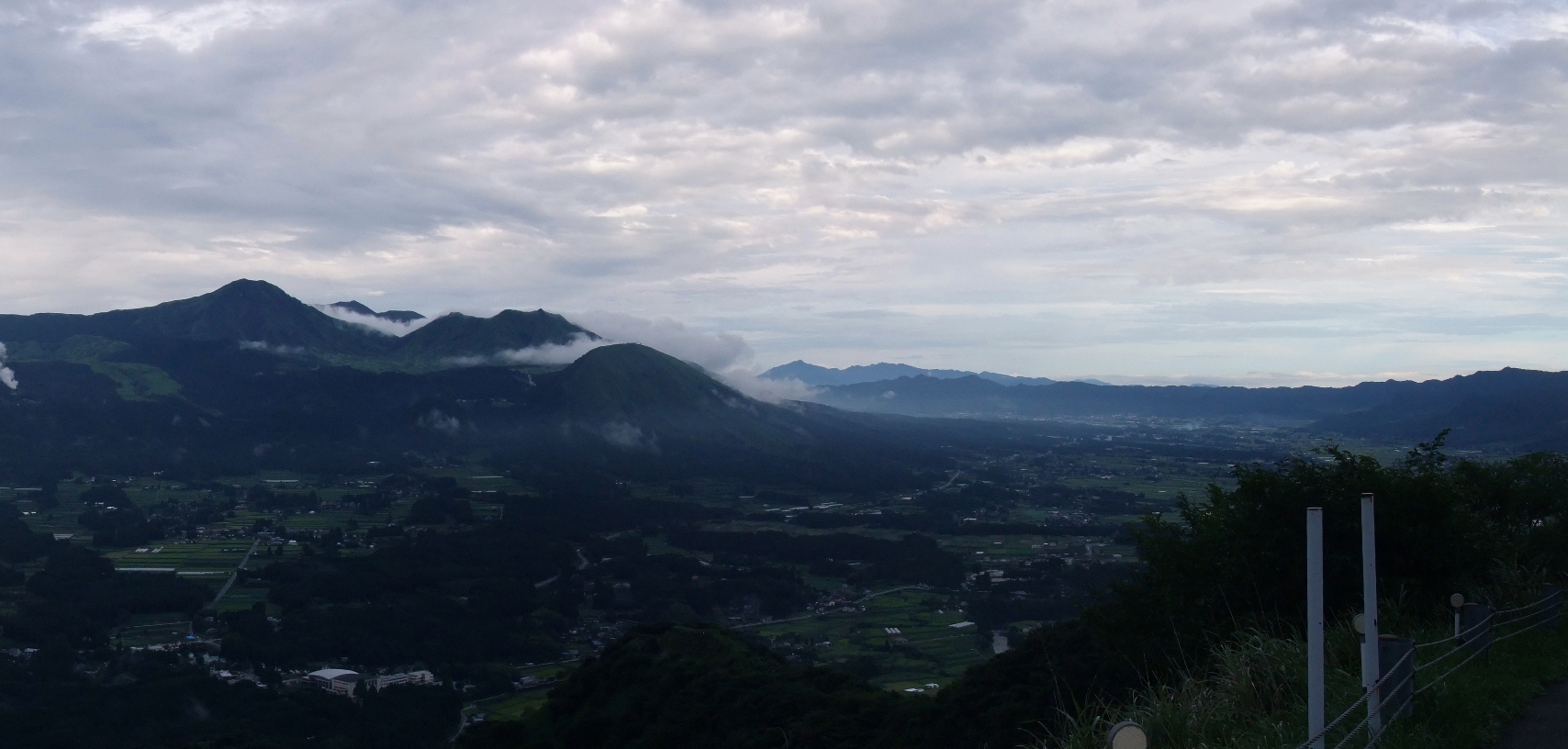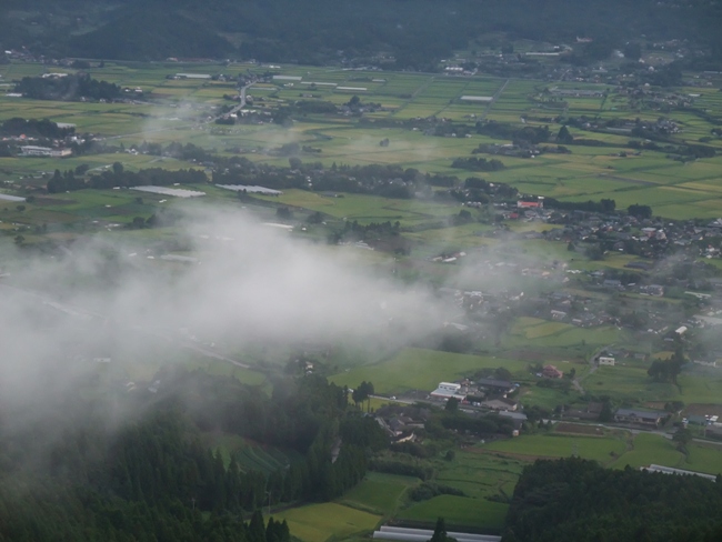 中央にそびえたつ阿蘇山、その周りに広がる南阿蘇の田園風景…そしてそれを囲むように続く外輪山。阿蘇の北側とはまた違った雰囲気です。考えてみたら南側からの風景は初めてです。