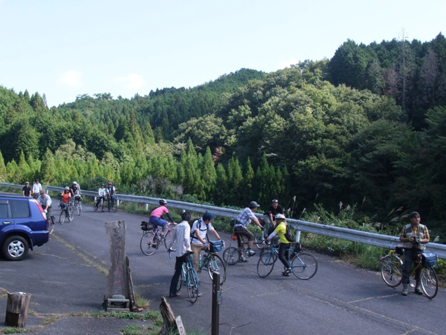 文殊峠のてっぺんで休憩。ここまでコミュニティバス(予約制)が来るんですって。