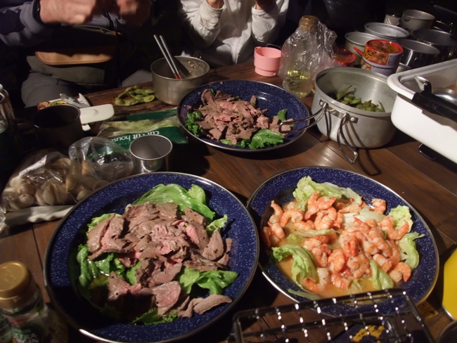 でも僕らを含めた2泊3日の6名に加えて、ヤマタンさんとLibertyさんが新たに合流!昨晩とはまた違った落ち着いた雰囲気の夕飯に!前の日と違って、水道が近くにあるテーブルに移動したのもなんだか雰囲気がまた違ってよかったですなぁ~(*^^*)
