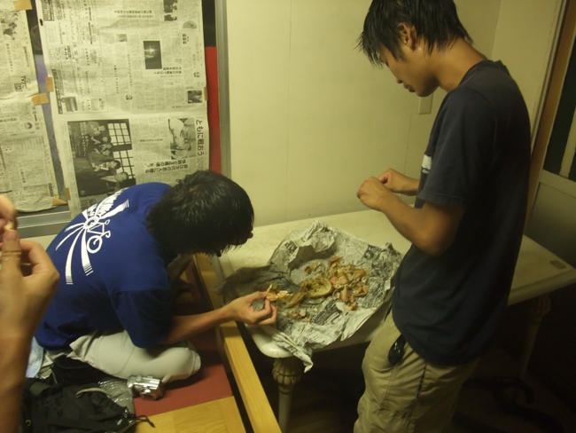 八雲を過ぎてからは特に1年生の顔色が悪かったですが、なんとか長万部の中ノ沢屋という安宿に到着。到着したとたんにが強く降り出します。