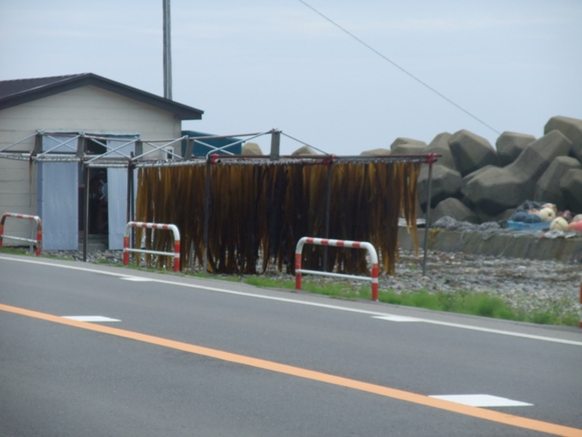 この日は朝食を食べてから湯の川そして恵山方面へと走りました。ちょうど昆布の季節なんでしょうか、海沿いを走っていくと至る所で昆布が干されていて、昆布の香りが漂っています。