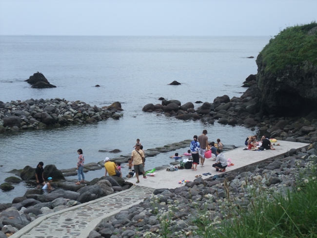 水曜どうでしょうで出てきた水無海浜温泉に入ってみようとしますが・・・水着の人らばっかし。しかも家族連ればっかし・・・。あとフナムシが多いのが・・・。