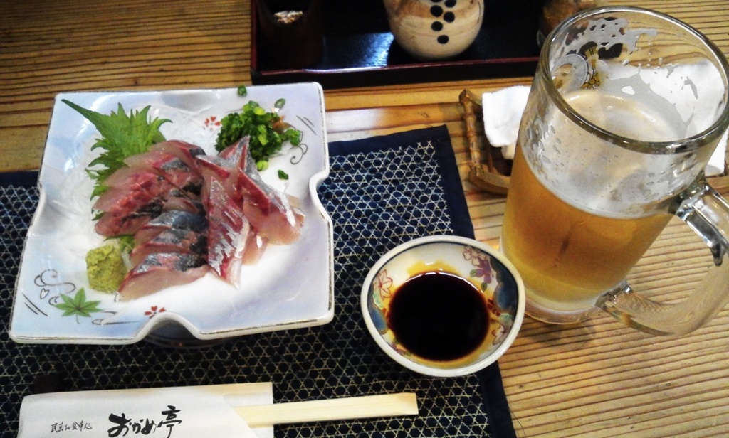 まずはアジの刺身を。