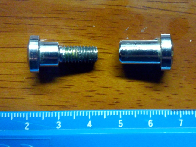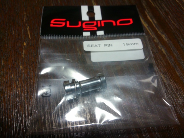 インターネットで検索すると、どうやらスギノという会社が「シートピン」という製品を出しているのを発見。うーむ、たぶんコレです。長さも17mm、19mm、22mm、25mmの四種類あるようです。「sugino」の刻印有り無しもあるみたいですな。ぼくのに付いていたのはたぶん刻印なしのネジなのでしょう。
