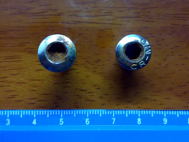 ネジ穴の錆びが極めついてきまして・・・・・・六角レンチを差し込んで回そうとすると、あのナメる感覚がすごくて「ああ、やばいなぁ」という感じです。