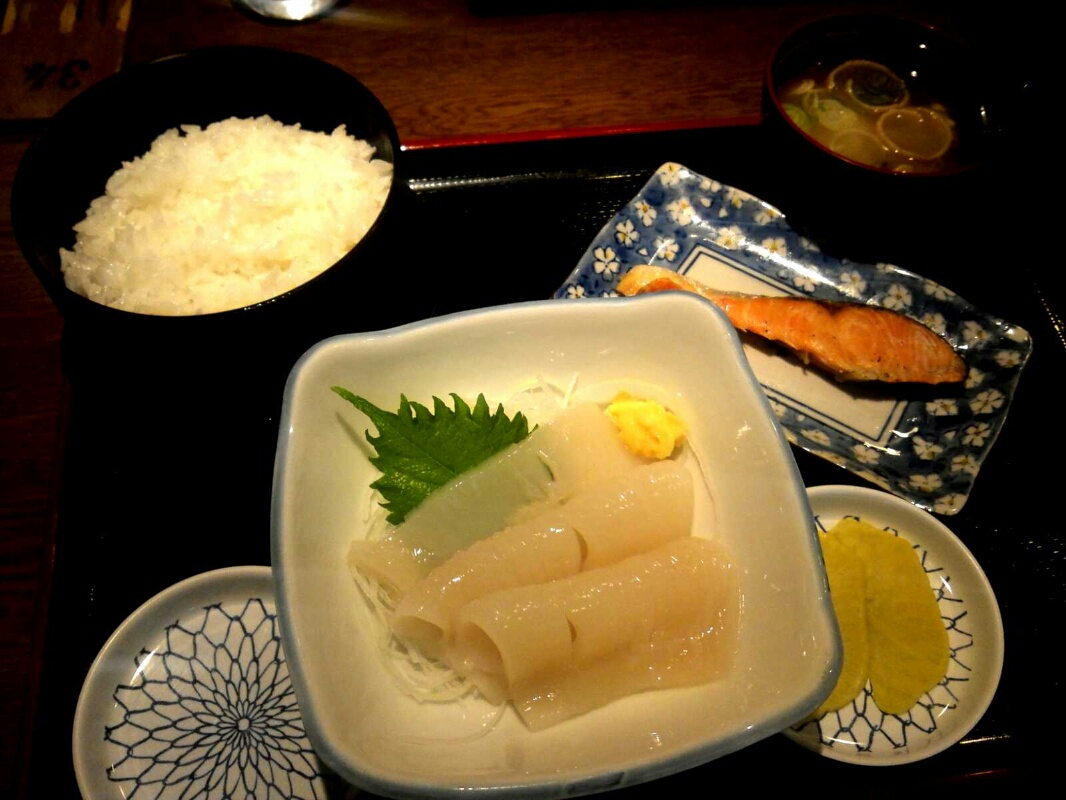 イカ刺し定をチョイス!ご飯味噌汁おかわり自由!