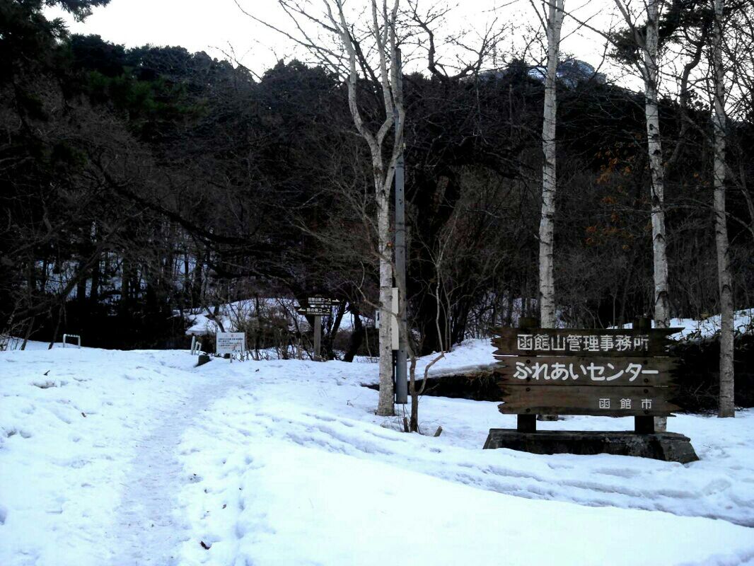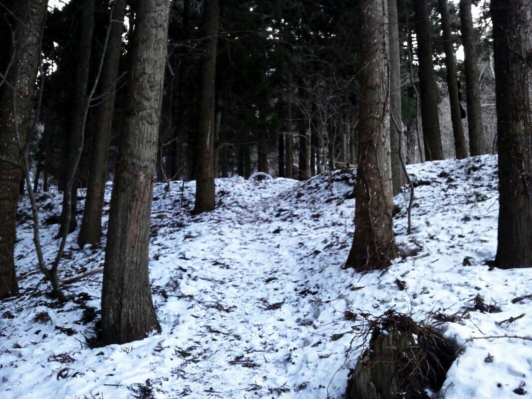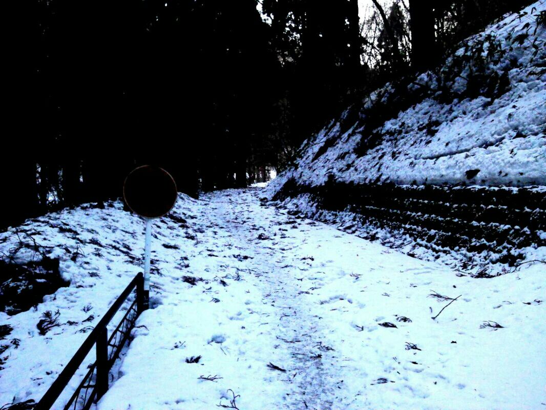 もう、登り口から雪だ…